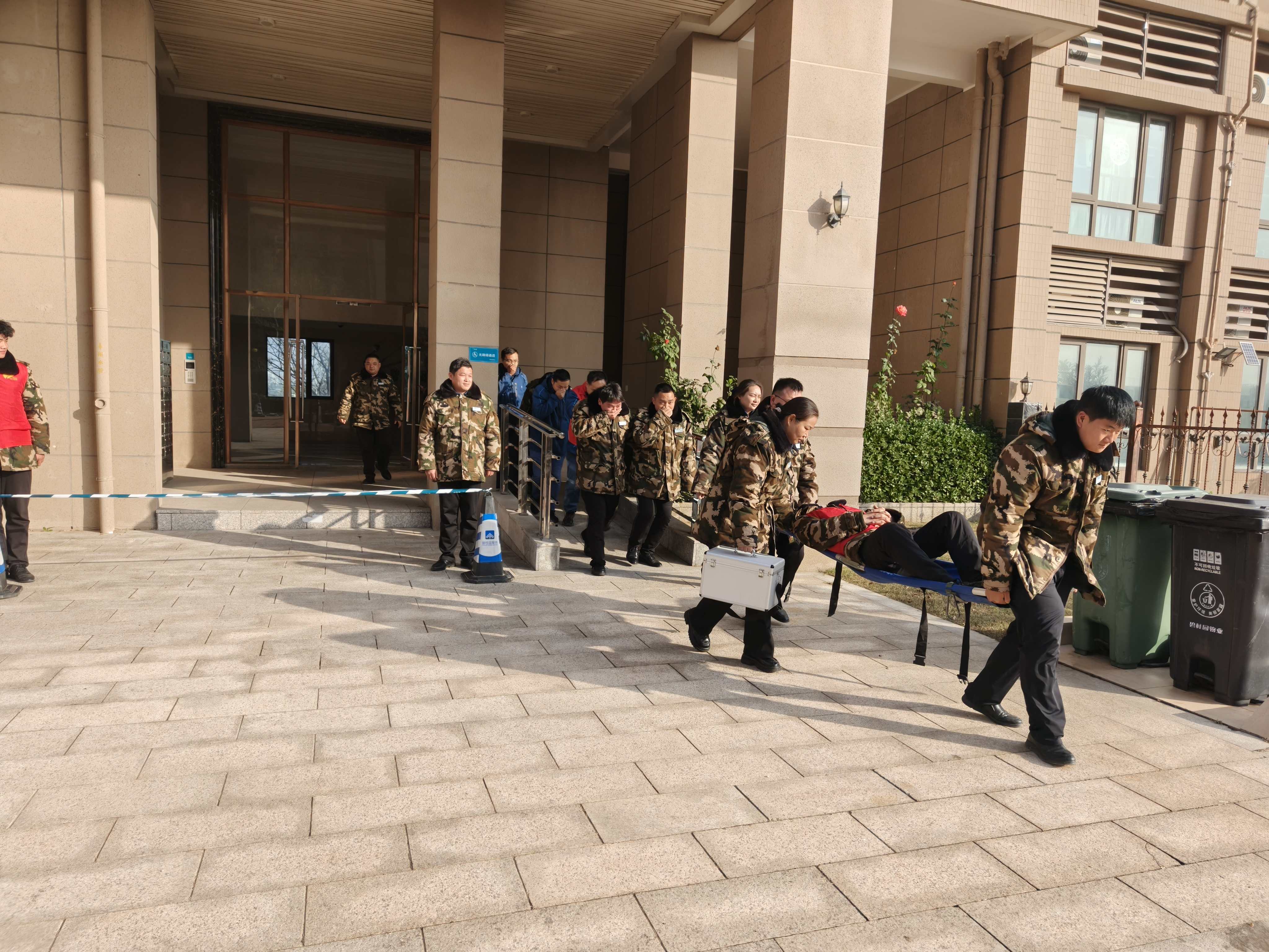 随着模拟火灾警报声响起,演习正式拉开帷幕。在应急演练环节,模拟场景设定为郑州碧桂园芷兰湾小区123楼栋突发火情并伴有烟雾扩散。工作人员第一时间启动应急预案,迅速切断电源、模拟拨打“119”报警电话,并组织疏散引导组、灭火行动组、医疗救护组各司其职,有序开展应急处置。在工作人员引导下,志愿者们用湿毛巾捂住口鼻,弯腰低姿,按照预定疏散路线快速、有序撤离至小区安全区域。随后,物业工作人员现场演示了灭火器“提、拔、握、压”的使用步骤,并邀请社区工作人员和志愿者亲自操作,确保每个人都能熟练掌握灭火技能。整场演练紧张有序、分工明确,达到了预期效果。