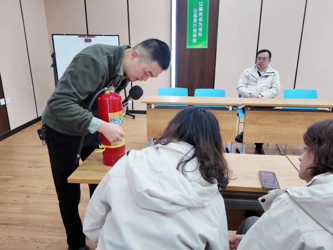 针对旅行社的办公环境及文旅行业的特性,曾主任重点讲解了日常工作和生活中普遍存在的安全用火用电隐患。他从办公电器的规范使用、插线板的超负荷风险、手机充电器的安全注意事项,到如何排查老旧线路、如何安全使用电器等,逐一进行了细致入微的讲解。同时,他还普及了不同种类灭火器(如干粉、二氧化碳、水基型)的适用场景、正确使用方法及“提、拔、握、压”四字口诀,并详细介绍了防烟面罩、功能锤、灭火器等新型消防器材的功能与操作。
